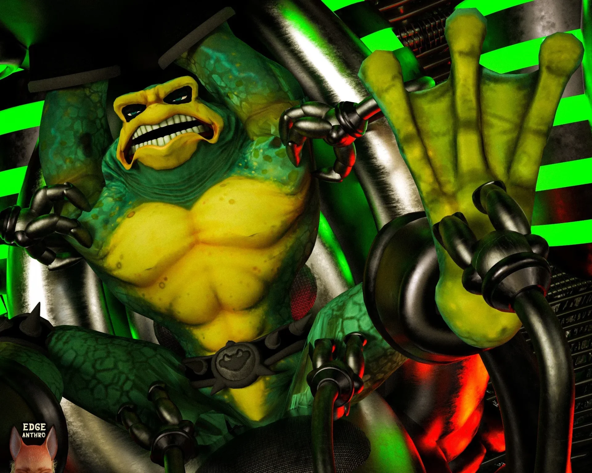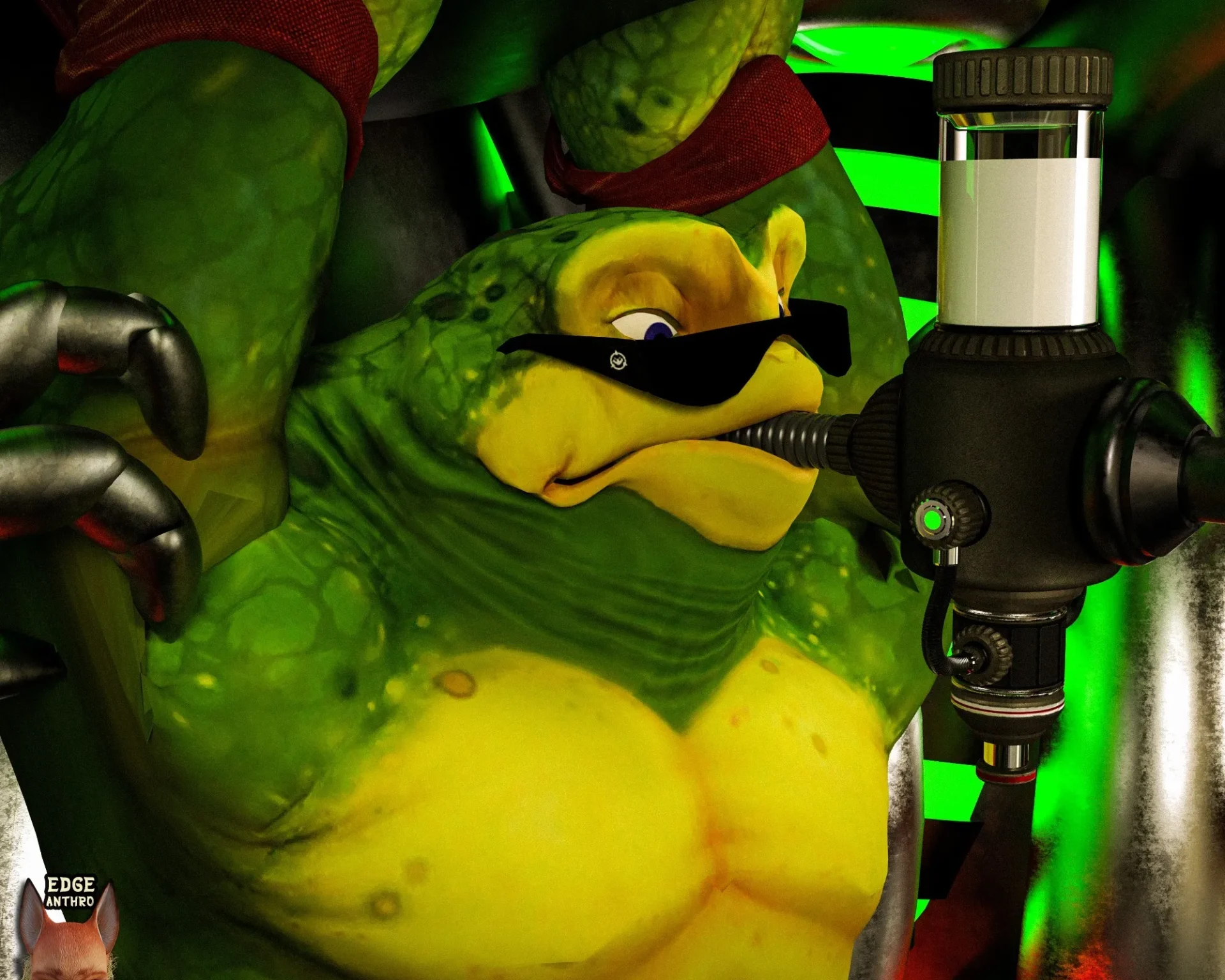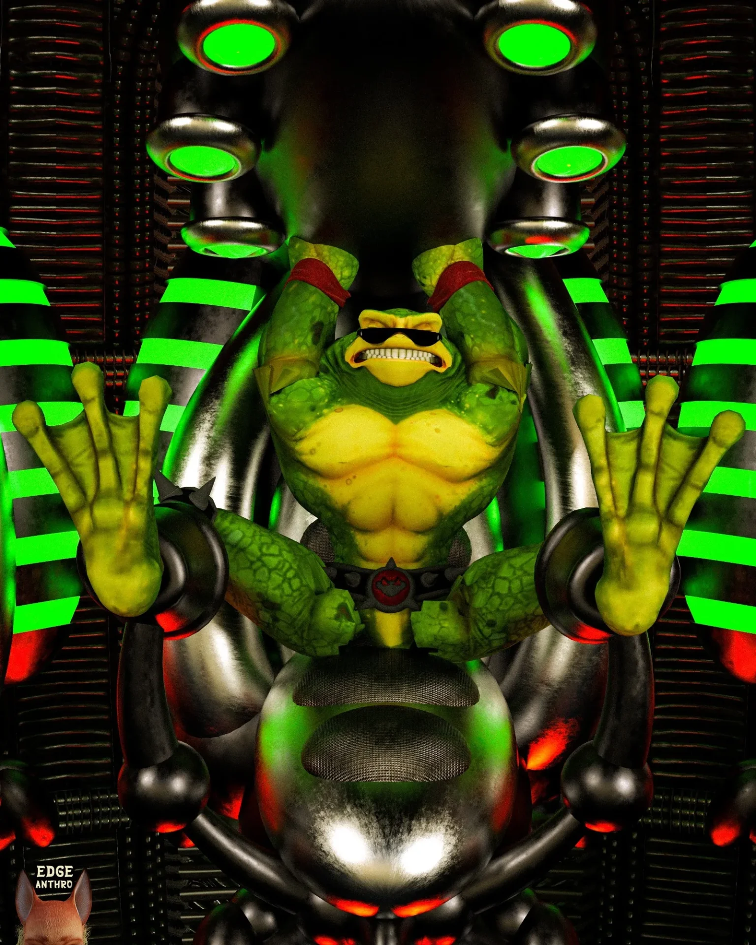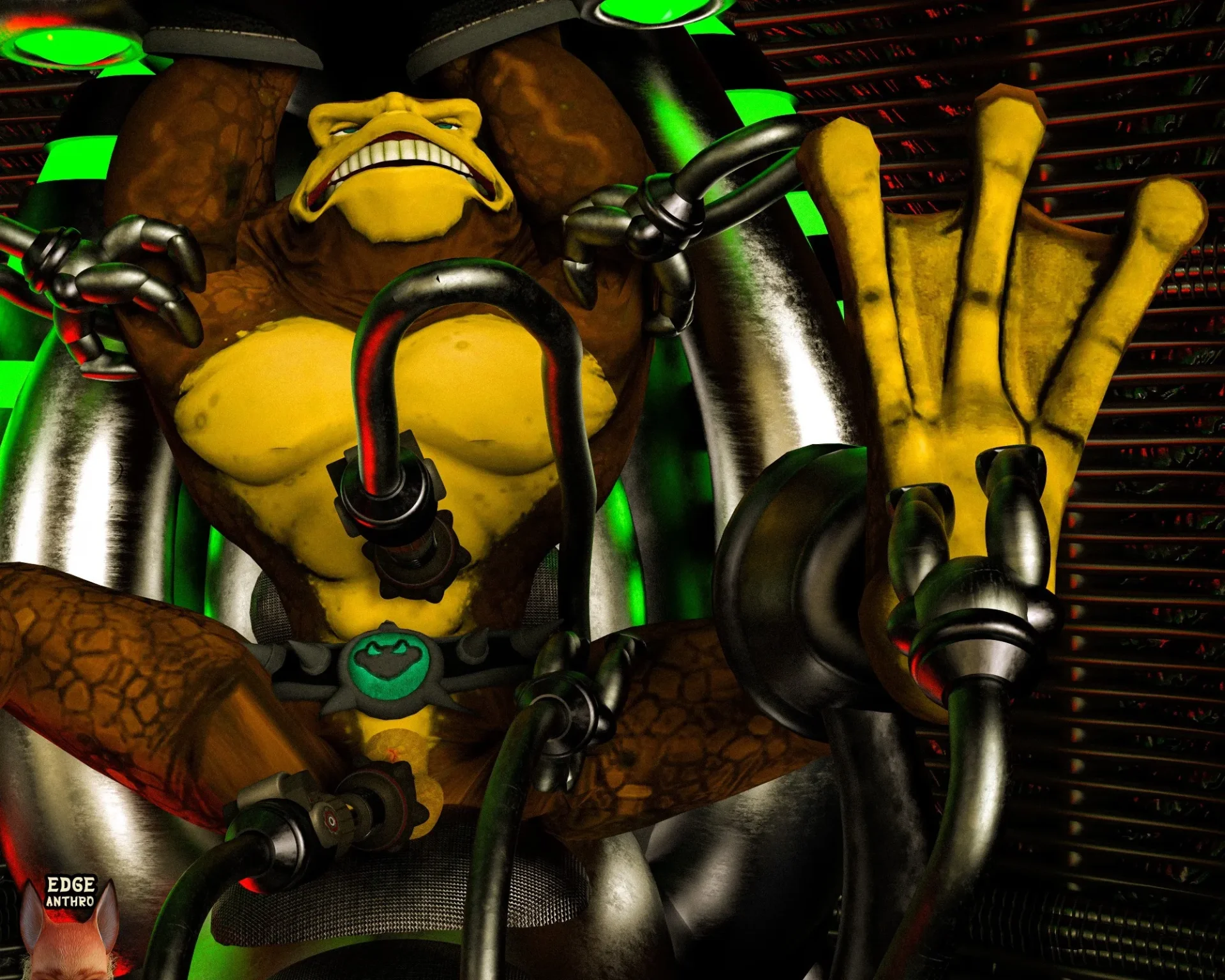 Rash, Zitz, and Pimple find themselves bound to a massive machine deep in an alien spacecraft. No amount of squirming can break them free. Metal hands coil toward them, tickling their armpits and feed. Tentacles pound their abs and balls. Finally, the milking begins, with tubes latched firmly on each of their members, draining every drop possible, only to force feed it back into each Battletoad. It makes it clear this milking is meant to last for a long, long, looong time.