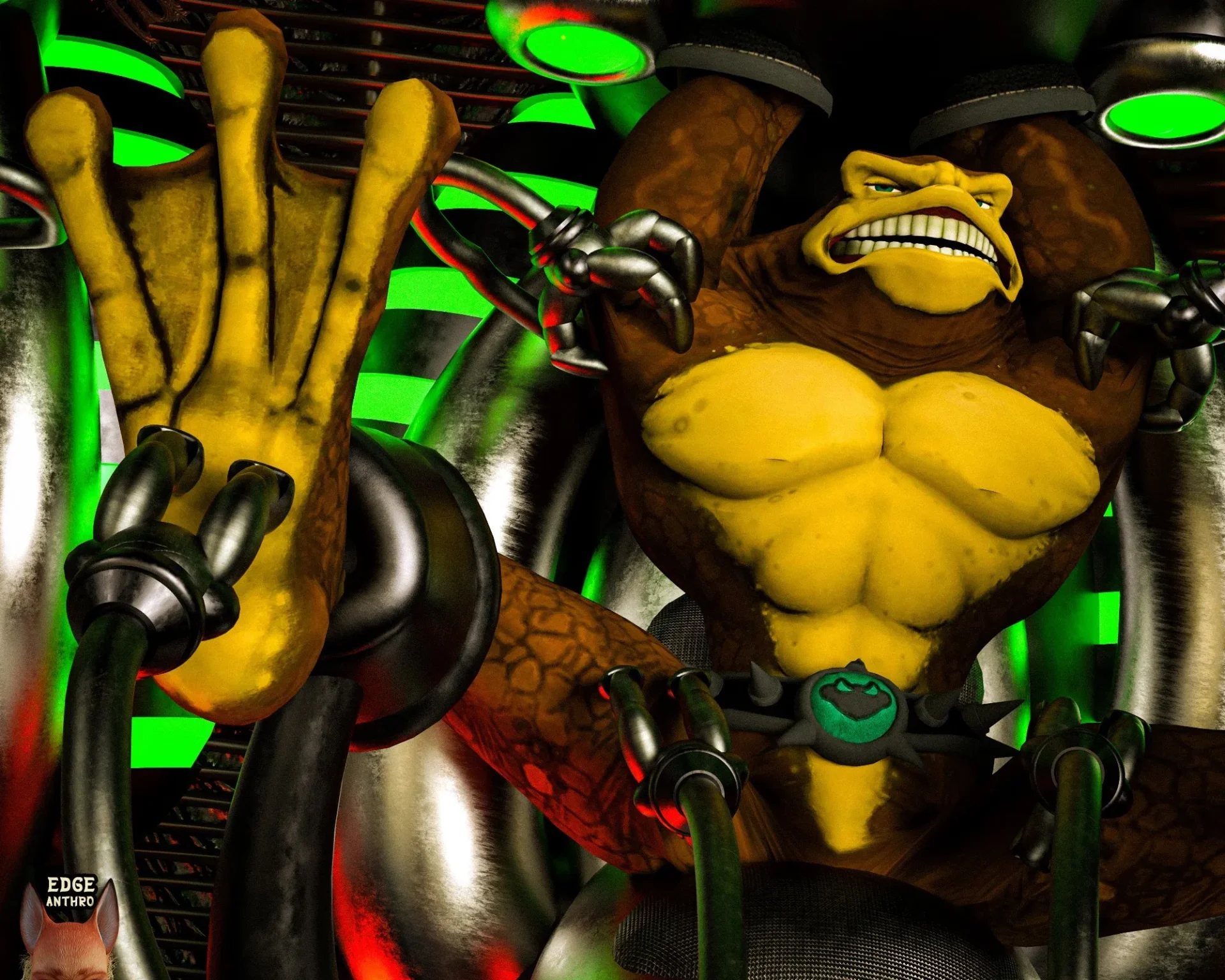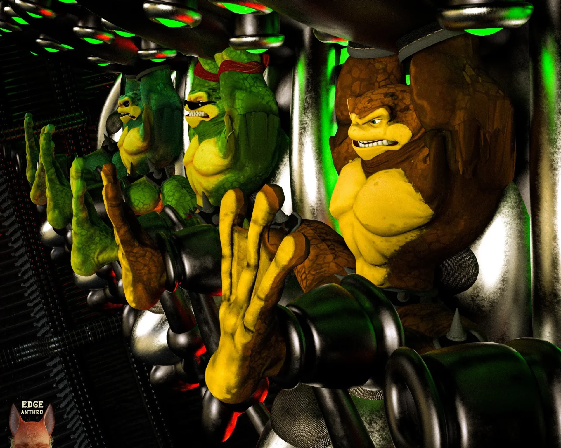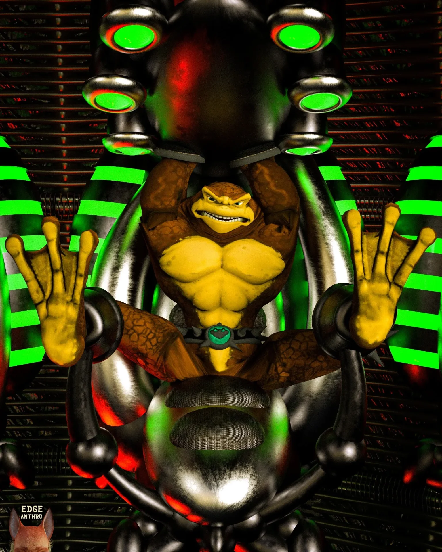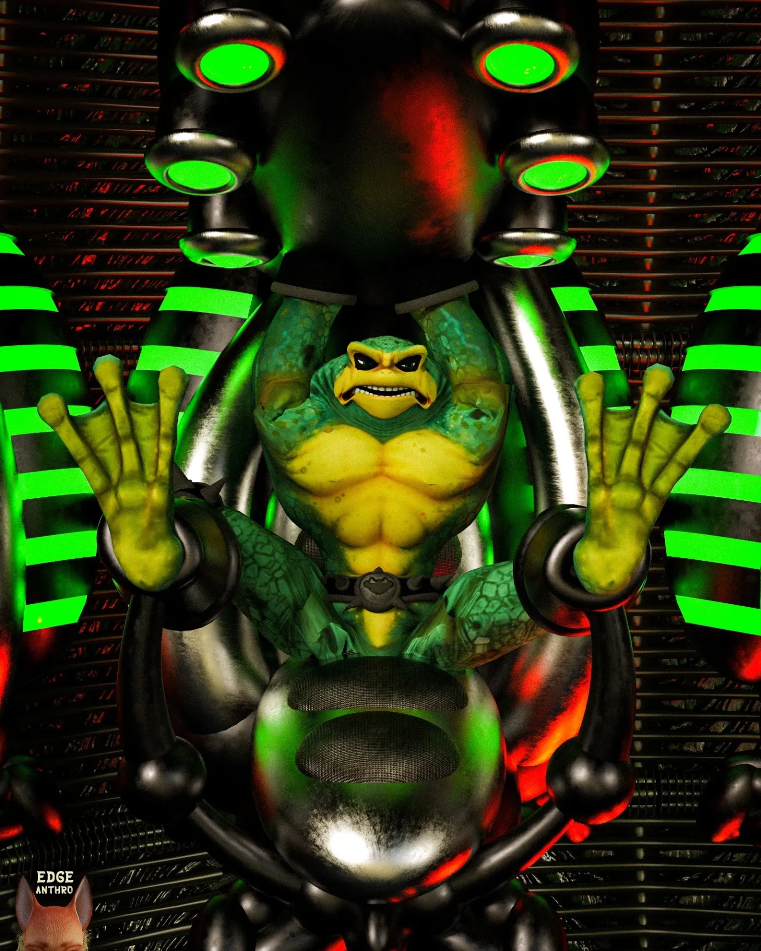 Rash, Zitz, and Pimple find themselves bound to a massive machine deep in an alien spacecraft. No amount of squirming can break them free. Metal hands coil toward them, tickling their armpits and feed. Tentacles pound their abs and balls. Finally, the milking begins, with tubes latched firmly on each of their members, draining every drop possible, only to force feed it back into each Battletoad. It makes it clear this milking is meant to last for a long, long, looong time.
