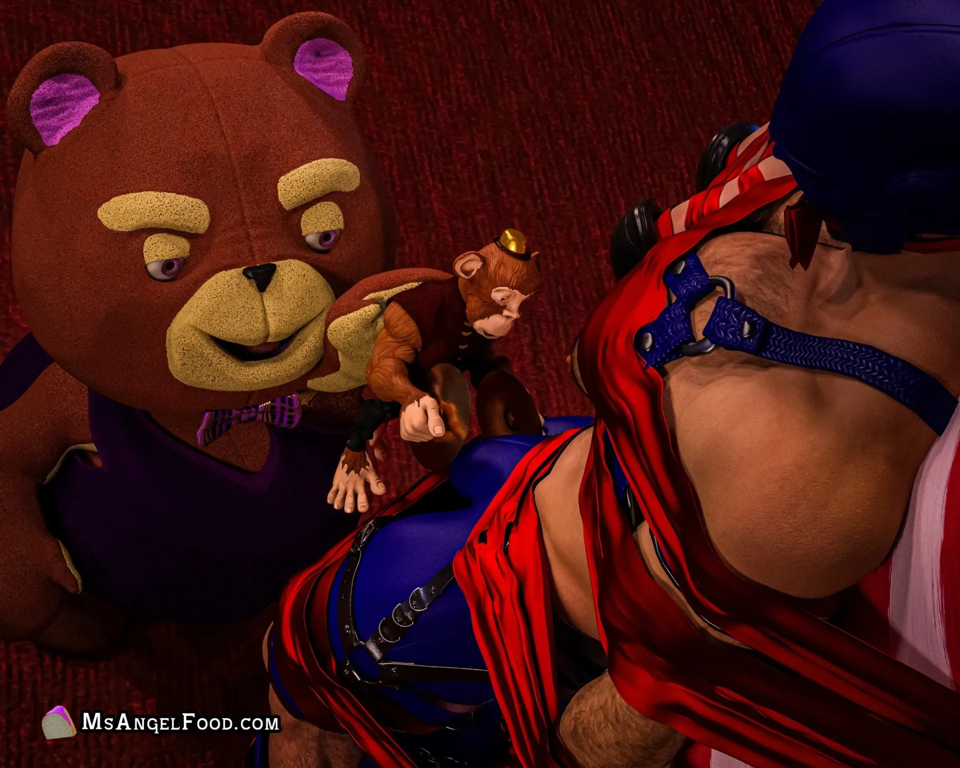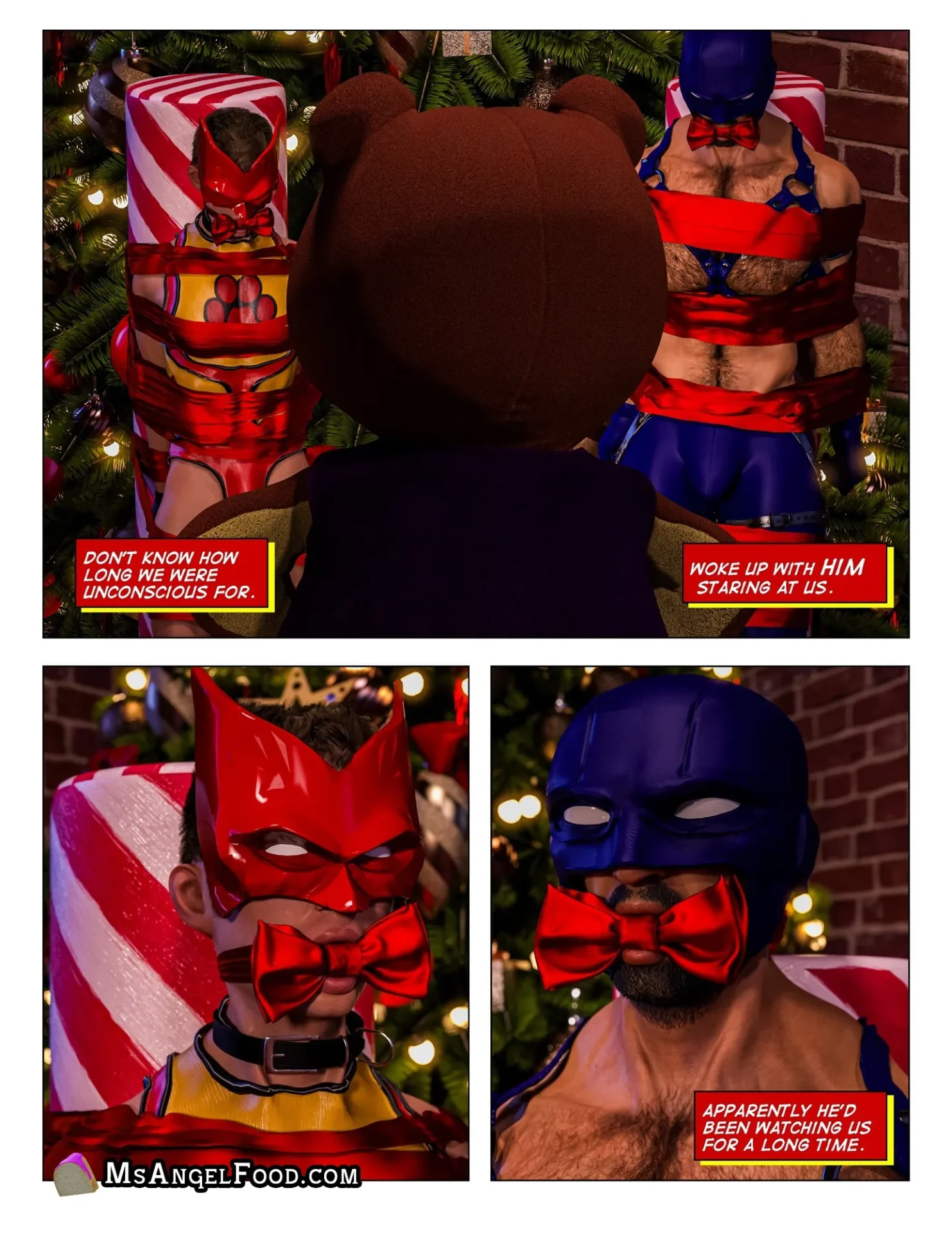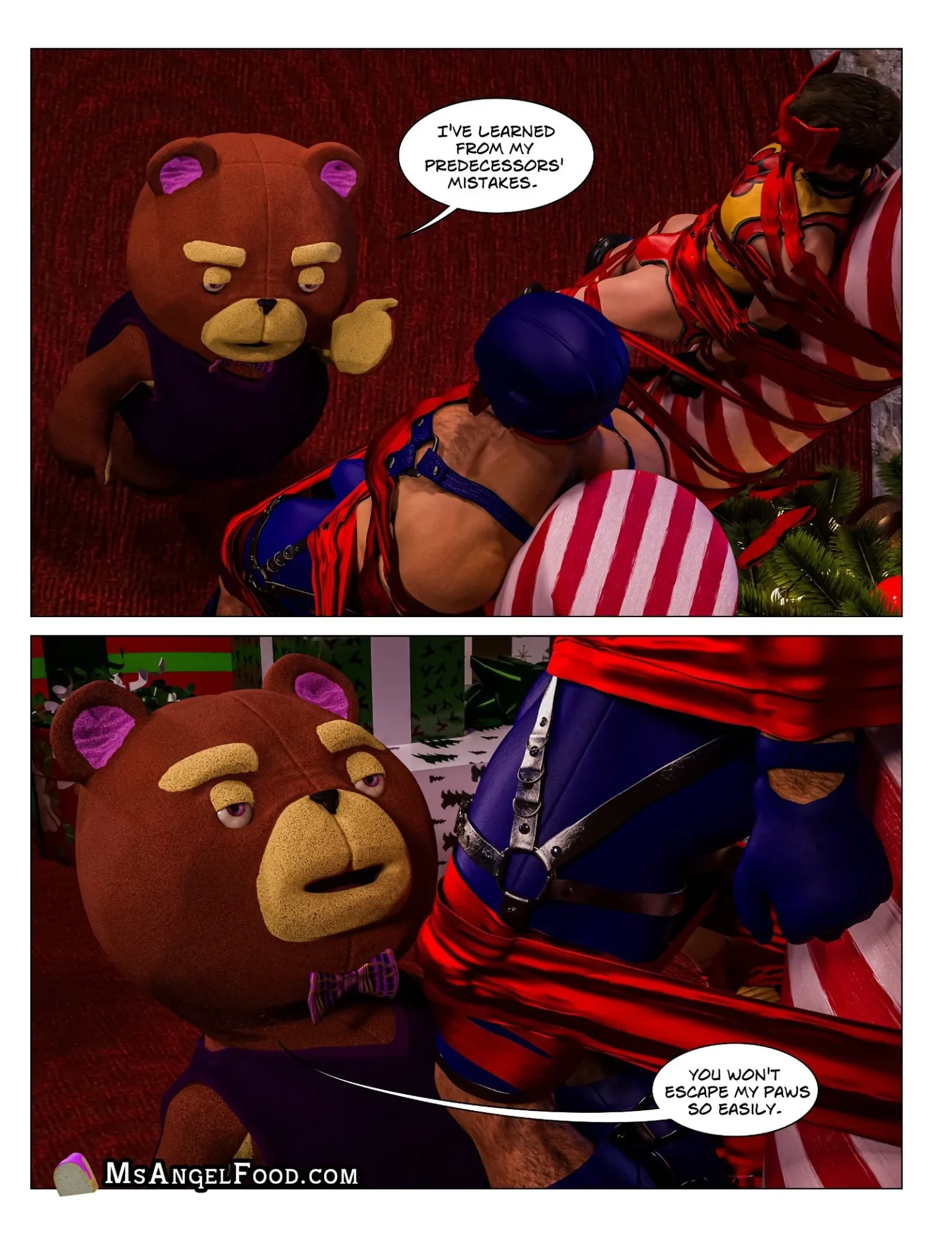 This villain’s been watching these horny heroes for years. And he’s finally ready to take what he needs. Mr. Stuffing, the megalomaniacal teddy bear, plans to play with his captives, using every toy in his toy chest. Gruff and Pup are helpless against this enemy who knows their powers and secrets.