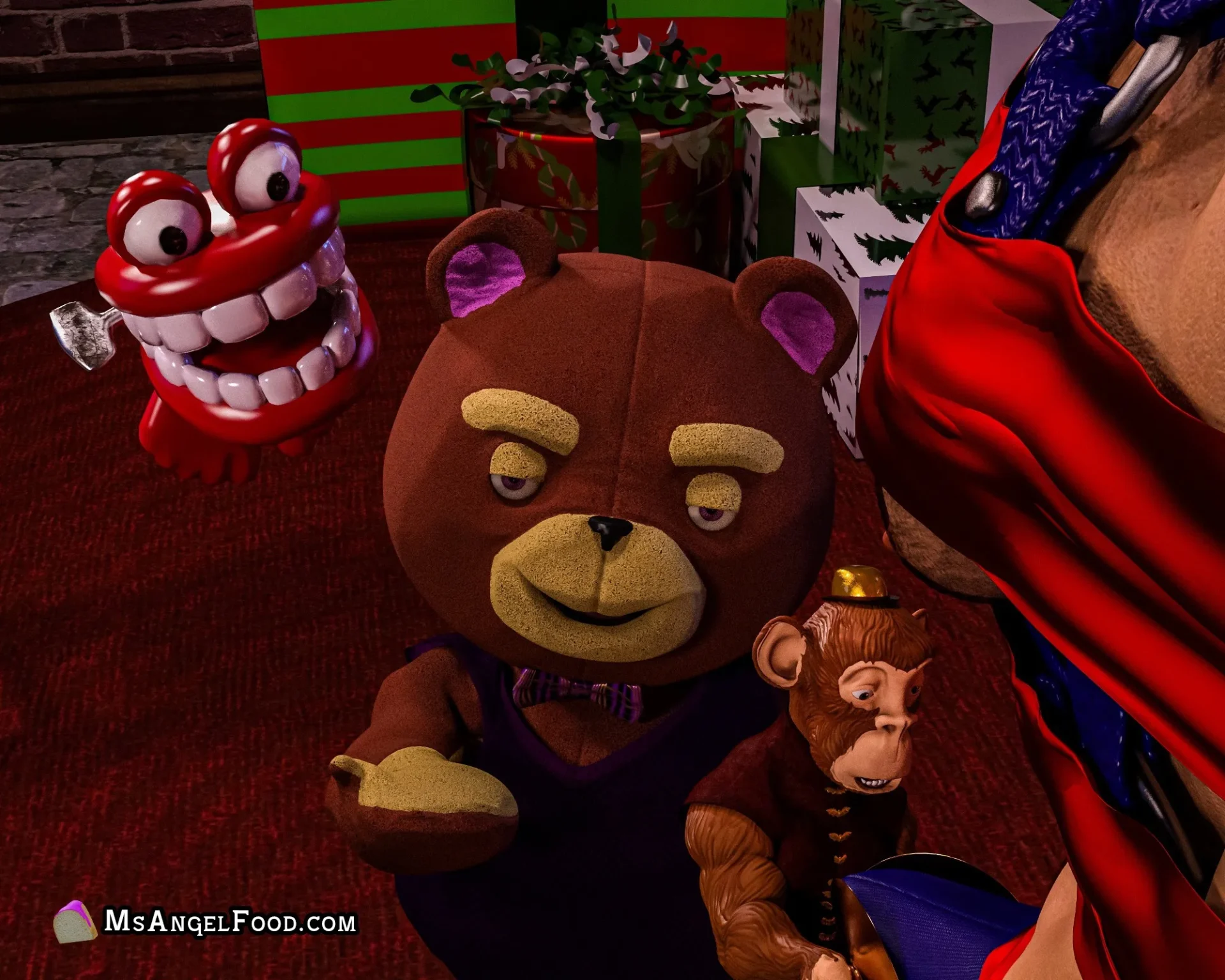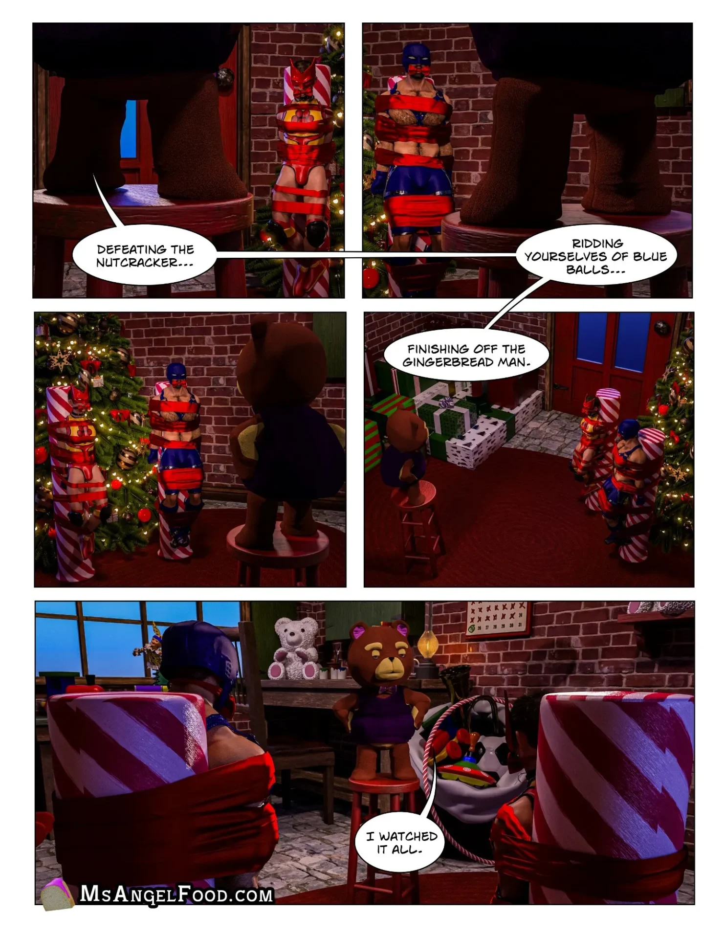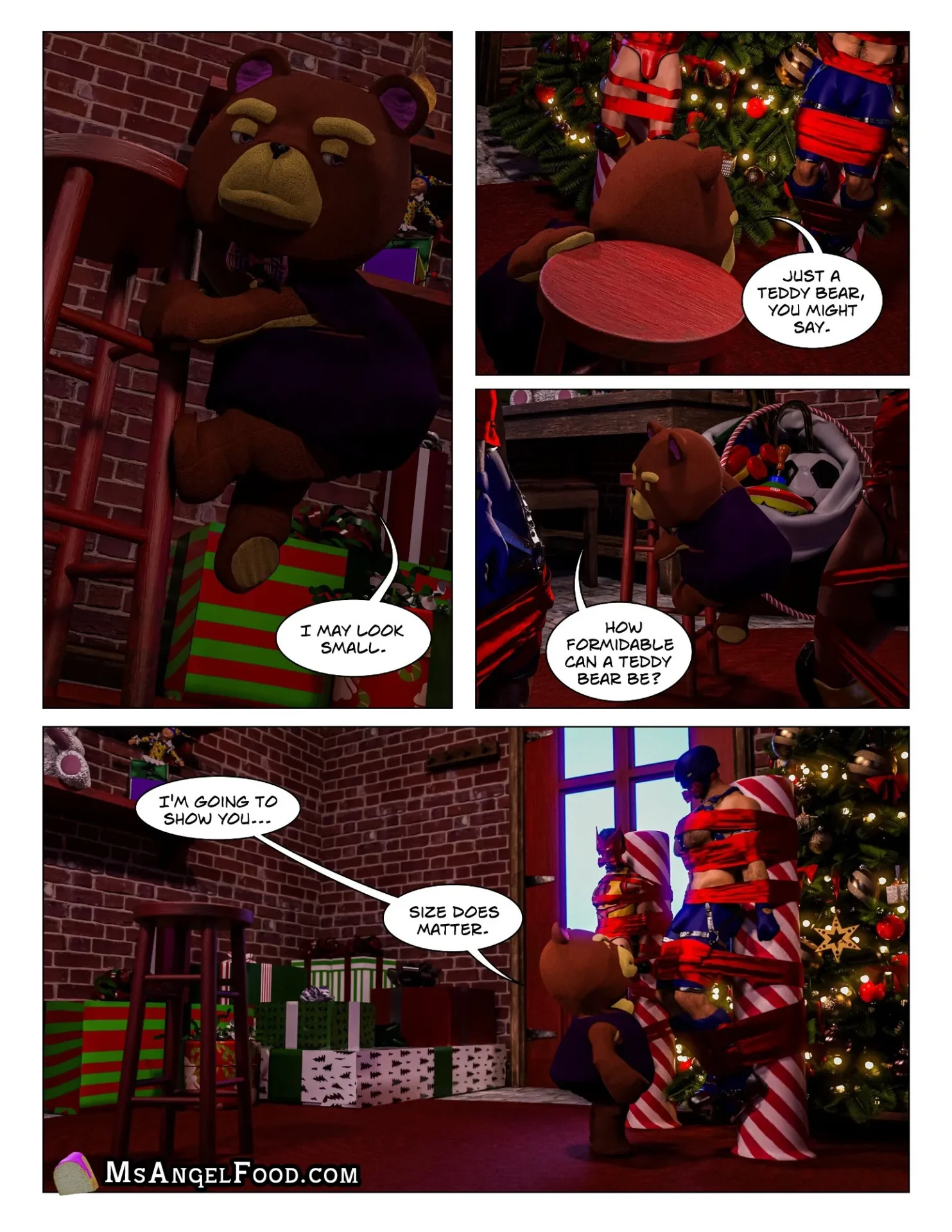 This villain’s been watching these horny heroes for years. And he’s finally ready to take what he needs. Mr. Stuffing, the megalomaniacal teddy bear, plans to play with his captives, using every toy in his toy chest. Gruff and Pup are helpless against this enemy who knows their powers and secrets.