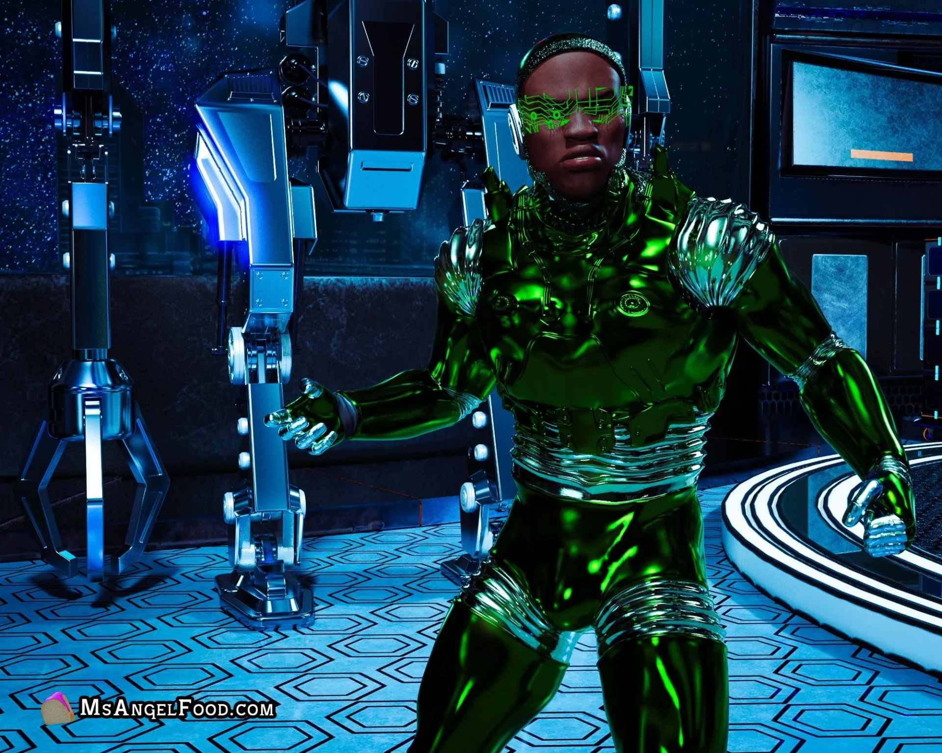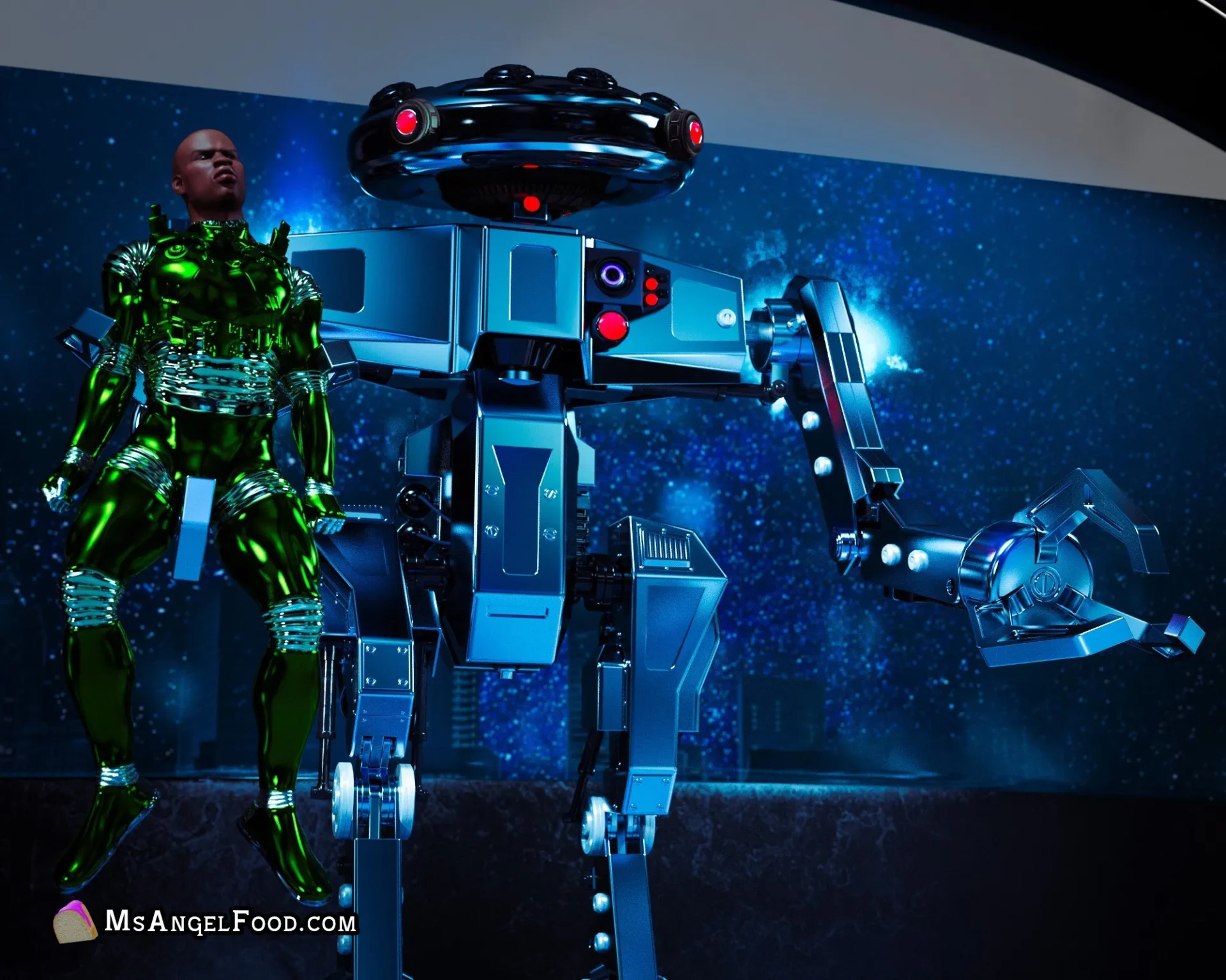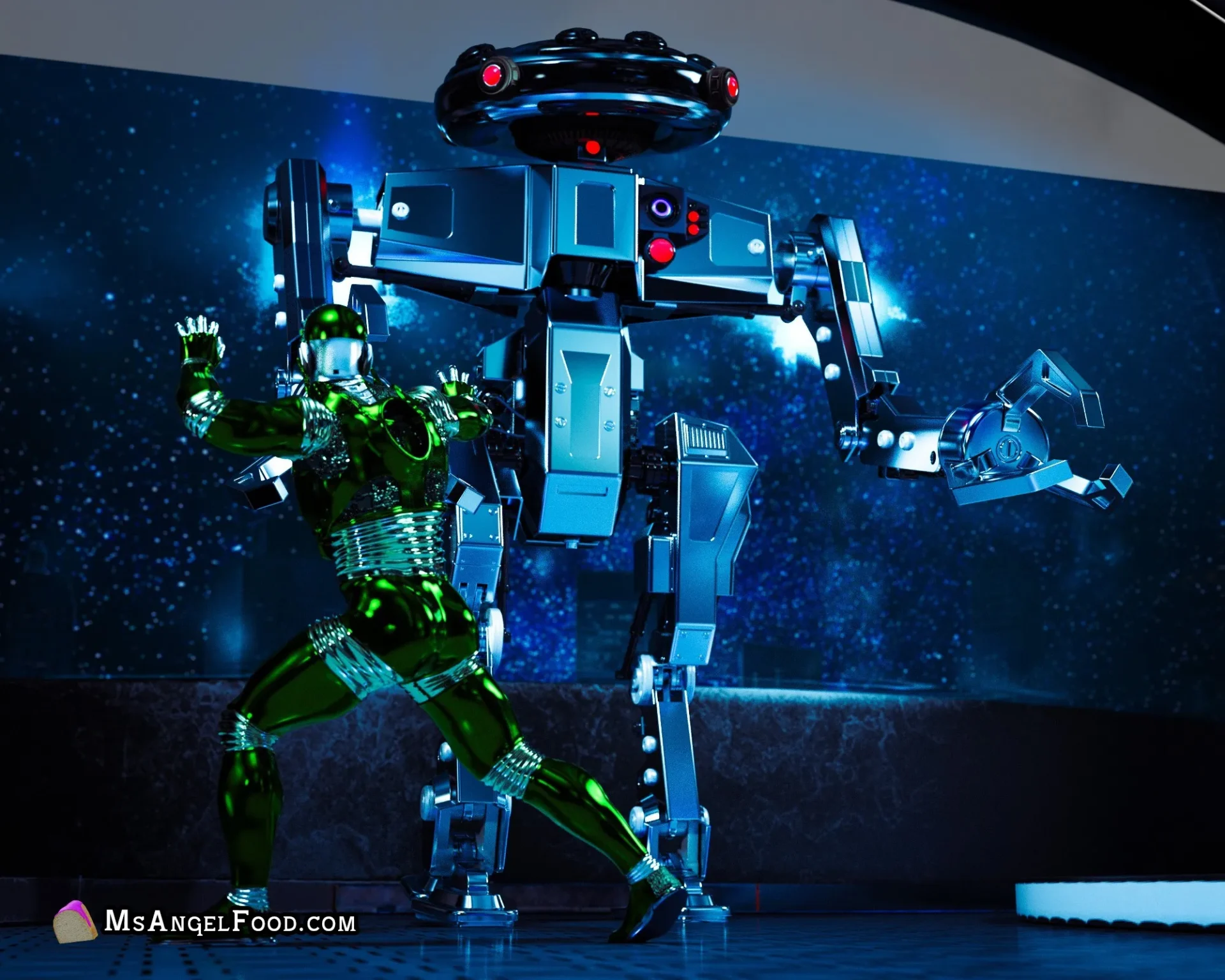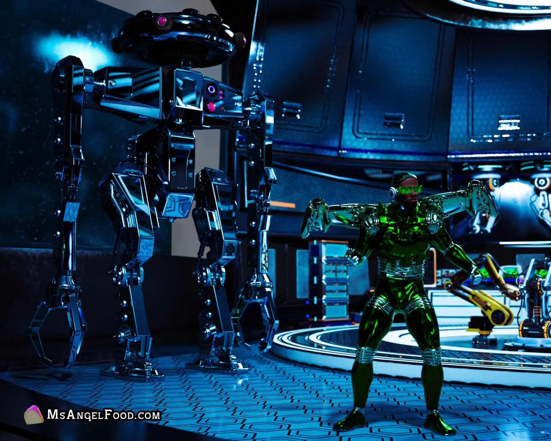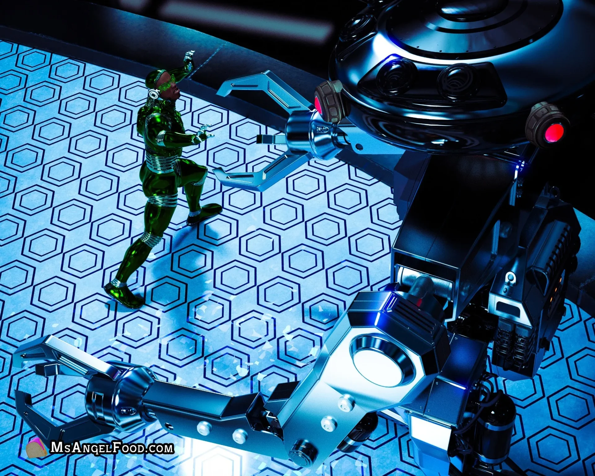 Metalsmith reveals his new invention: an eight-foot-tall, anatomically endowed robot. Metalsmith wants him and Fighter Jet to try out the new robot. Together.